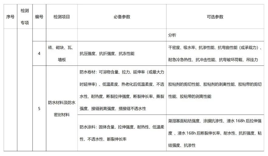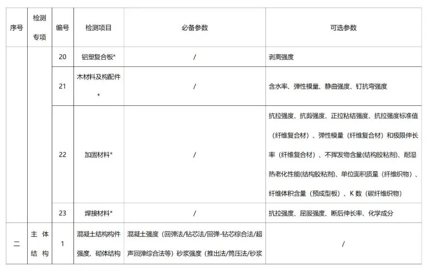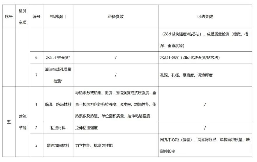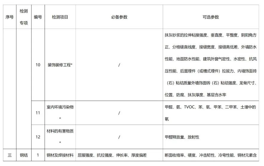 专项资质包括:建筑材料及构配件、主体结构及装饰装修、钢结构、地基基础、建筑节能、建筑幕墙、市政工程材料、道路工程、桥梁及地下工程等9个检测机构专项资质。