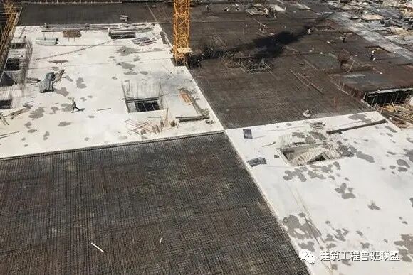 5)楼板也可以采用跳仓施工法,与基础底板施工方法相同,出于楼板厚度较薄的考虑,浇筑间隔时间可相应缩短一些,其实过去分段流水作业中已有这方面的经验。