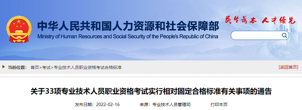 经商有关部门同意,决定自2022年度起,将实行相对固定合格标准的专业技术人员职业资格考试由17项增至33项。现就有关事项通告如下: